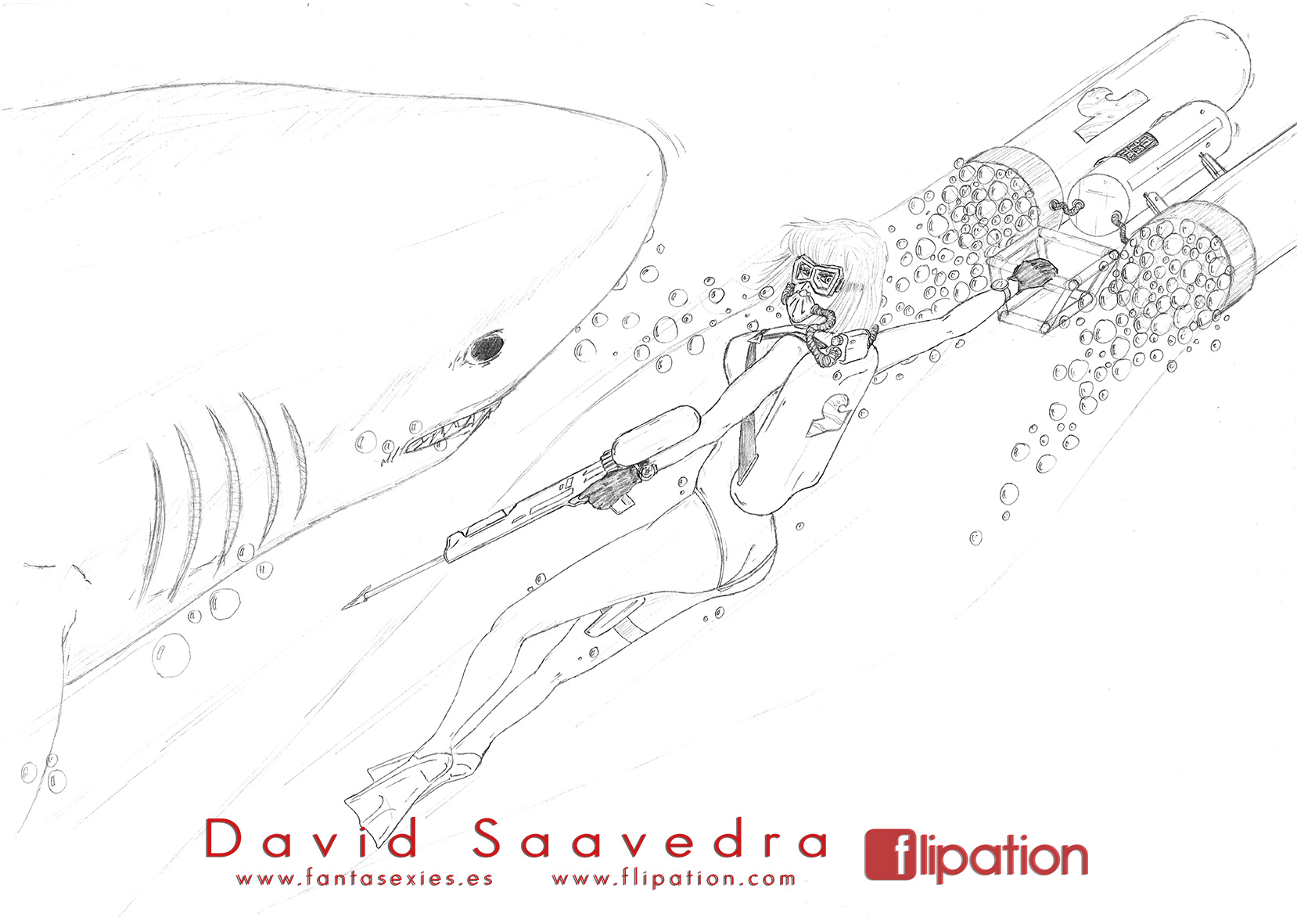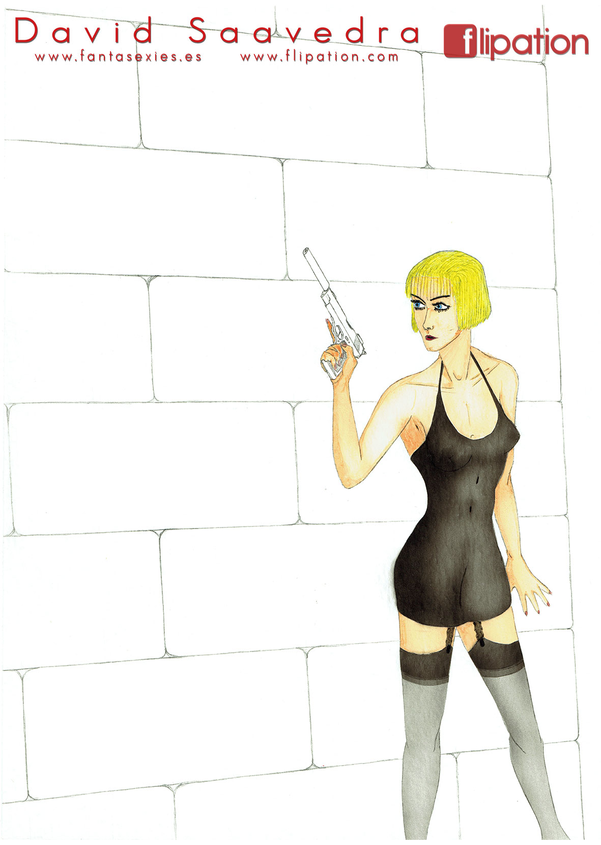 Otro dibujo de agente especial perseguida por asesino en serie inspirado en el Dr. Philip K. Decker de la película Razas de Noche.