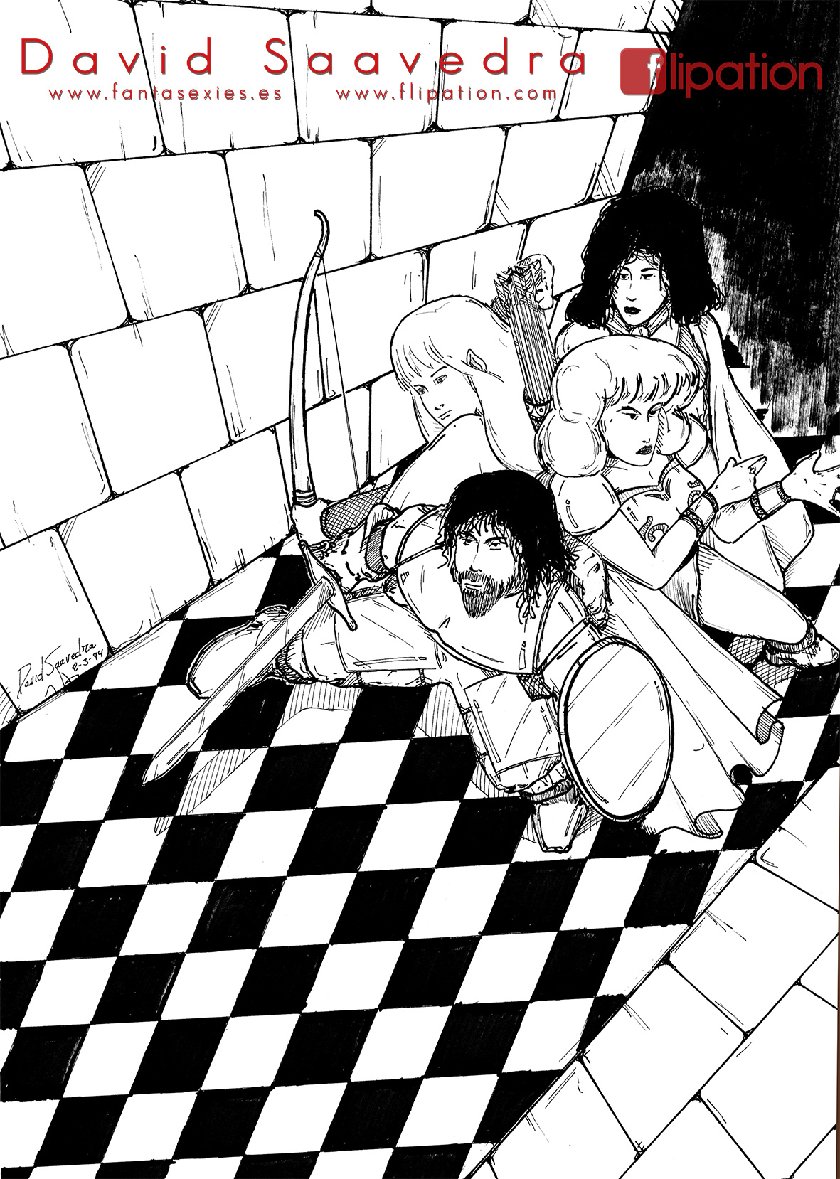 Dibujo del grupo de personajes con los que jugué a la trilogía de Eye of the Beholder.