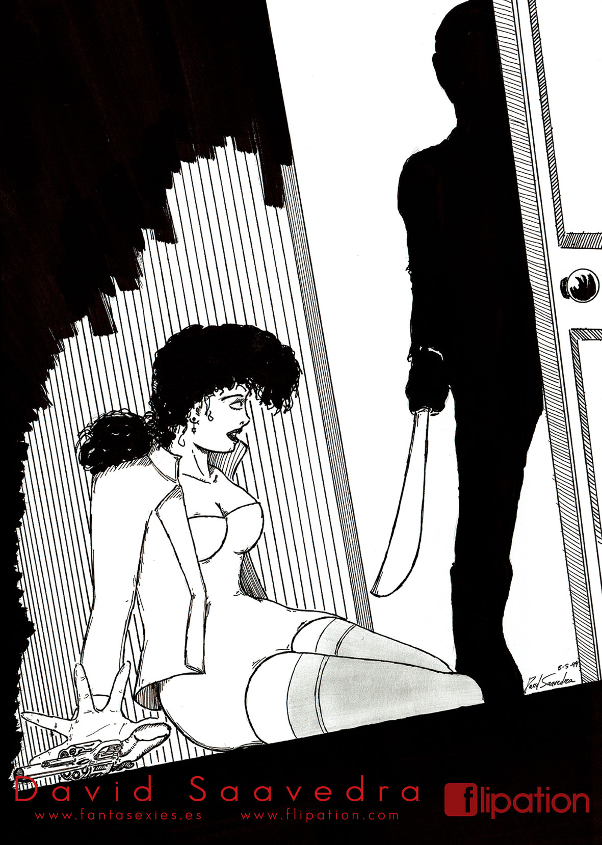 Dibujo de una investigadora asaltada por un asesino en serie.