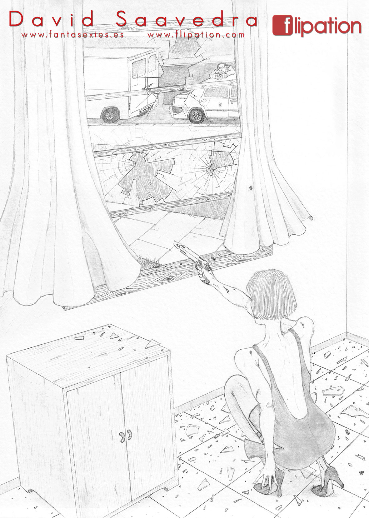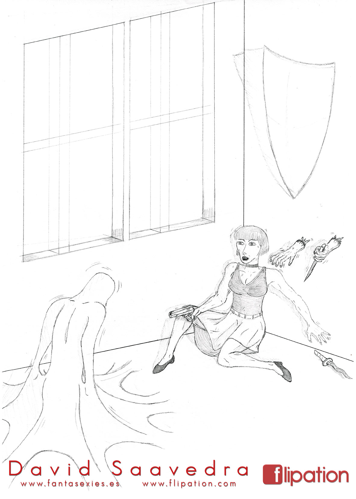 Dibujo de una investigadora asaltada por un asesino en serie.
