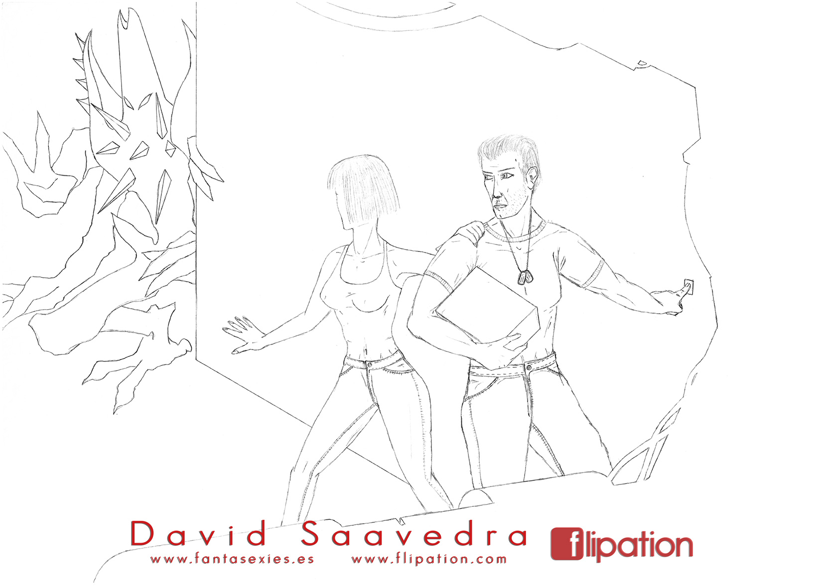 Otro dibujo de agente especial perseguida por asesino en serie inspirado en el Dr. Philip K. Decker de la película Razas de Noche.