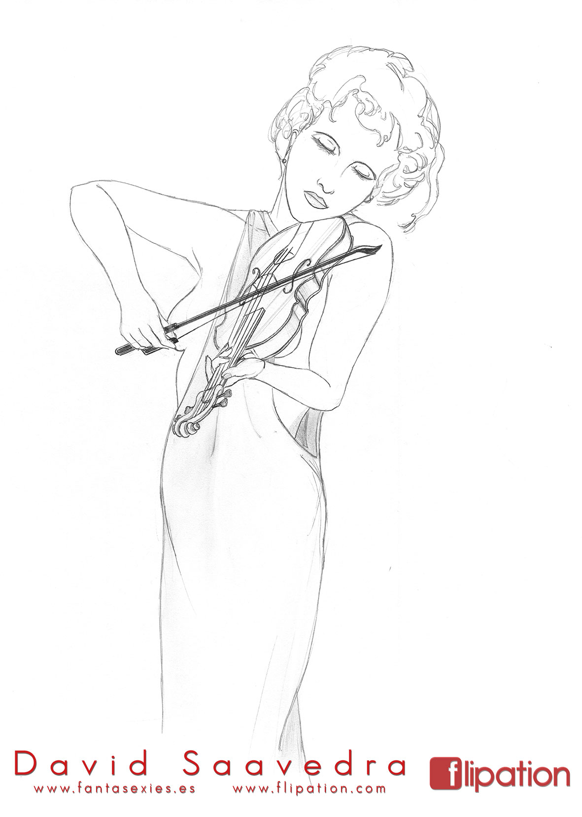 Dibujo pin-up de una esgrimista ataviada solo cun una camisa y llevando un morrión y una espada ropera.