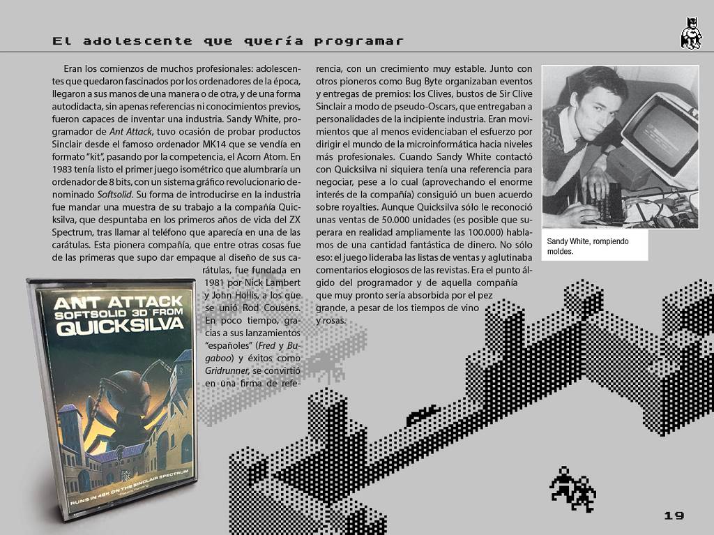 Maquetar el libro me llevó casi un mes y medio a tiempo completo. Durante el proceso he descubierto compañías, autores, ilustradores y un montón de detalles e historias que desconocía anteriormente. He disfrutado maquetándolo tanto como el anterior o más sabiendo que debía mantener el mismo nivel visual y tratar de superarlo. Espero que el trabajo volcado en ambos libros sea del agrado de todos los amantes del mundo del videojuego retro en general y de los usuarios de la máquina de Sinclair en particular.